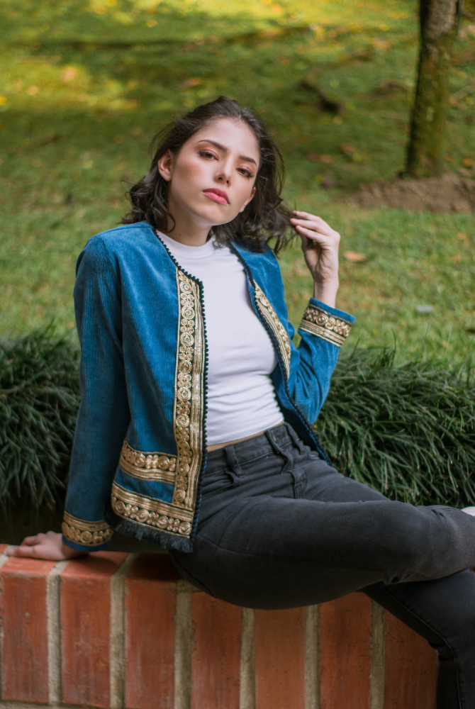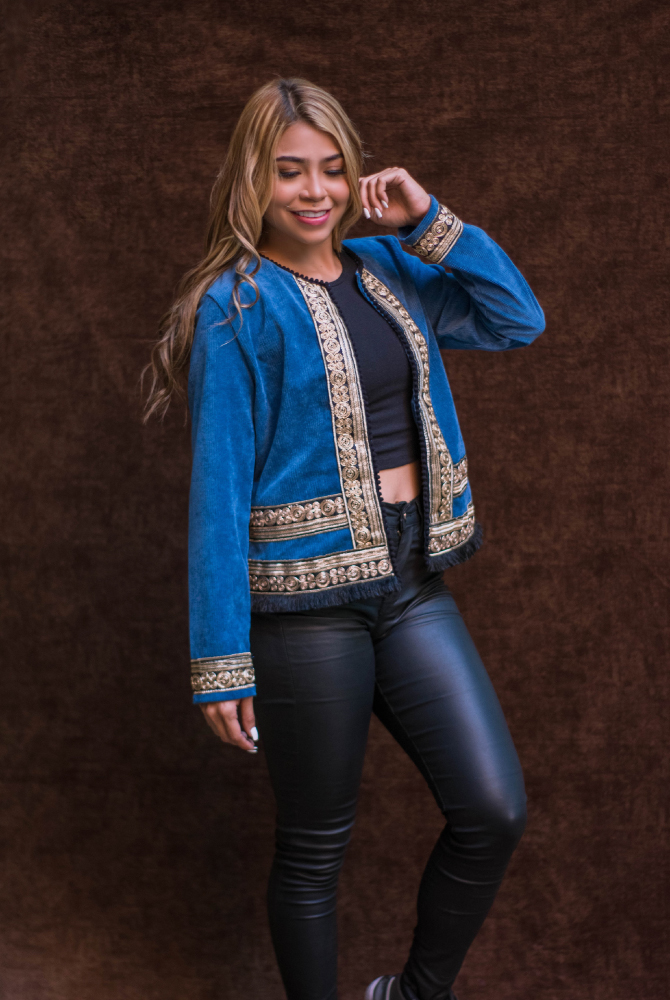 Material: corduroy/ galones dorados de la India
